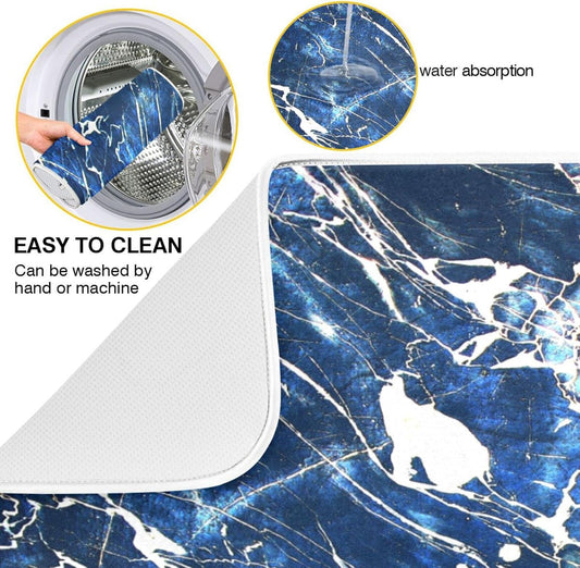 Super Absorbent Dish Drying Mat, Microfiber Fast-Drying Dish Mat, 24" x 18", Kitchen Dish Drying Pad, Marble Black Navy Blue