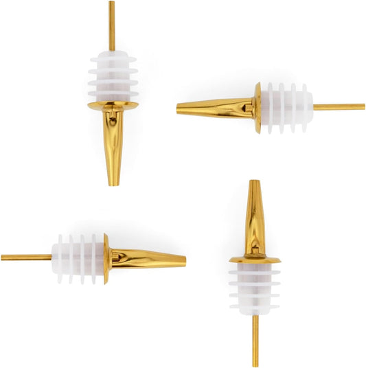 Molimoli Liquor Pour Spout Made of Stainless Steel with Automatic Anti-Oxidation Mechanism, Bottle Pourers for Alcohol, Olive Oil Dispenser Spout, Wine Pourer Spout, Oil Bottle Spout, Pack of 4, Gold