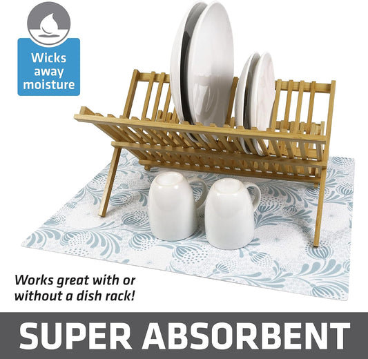 Drymate XL Dish Drying Mat, Oversized (19”x24”), Low-Profile, Super Absorbent, Quick Dry Fabric, Waterproof & Slip-Resistant, for Kitchen Counter, Trimmable, Easy to Clean (USA Made)(Blue)