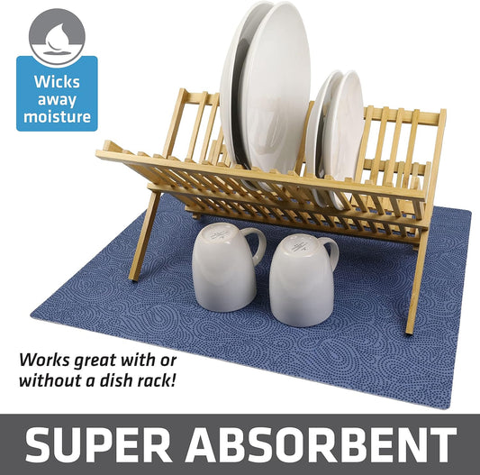 Drymate XL Dish Drying Mat, Oversized (19”x24”), Low-Profile, Super Absorbent, Quick Dry Fabric, Waterproof & Slip-Resistant, for Kitchen Counter, Trimmable, Easy to Clean (USA Made)(Indigo)