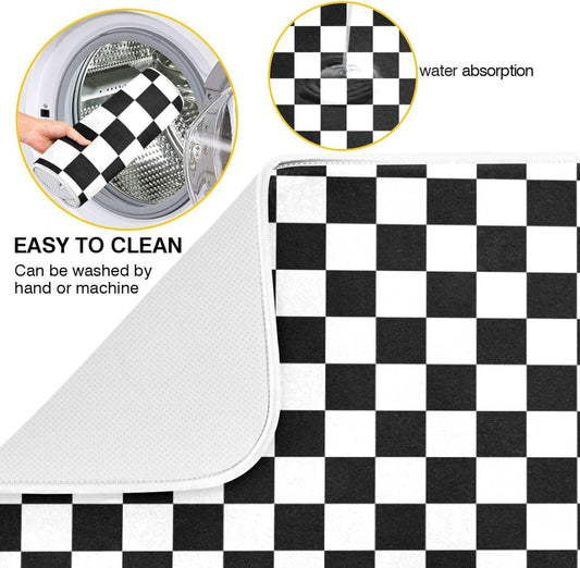 Black White Checkered Pattern Dish Drying Mat for Kitchen Counter Absorbent Microfiber Drying Pad, Large 18x24 in, Reversible Drainer Mats