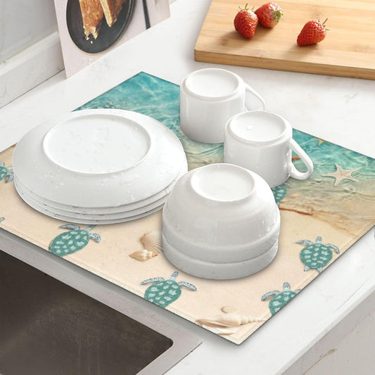 Sea Turtles Beach Dish Drying Mat for Kitchen Counter Cute Drying Pad 18x24 Inch Teal Nautical Decor Absorbent Reversible Dish Drainer Rack Mats
