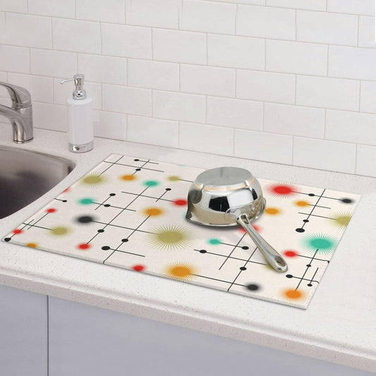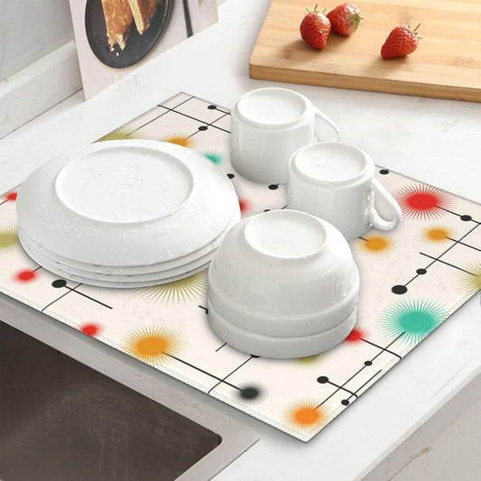 Mid Century Modern Retro Dish Drying Mat for Kitchen Counter Washable Absorbent Reversible Microfiber Vintage Decorative Drying Pad Kitchen Accessories 16x18 Inch