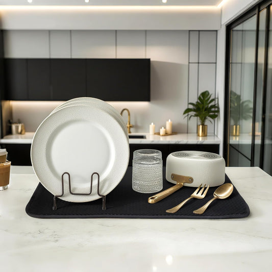 Black Dish Drying Mat XXL 17”x24” – Absorbent Kitchen Drying Mat for Kitchen Counter, Dish Rack Mat, Utensils, Pots & Pans – Dish Drying Pad, Drainer Mat, Dish Mats for Drying Dishes