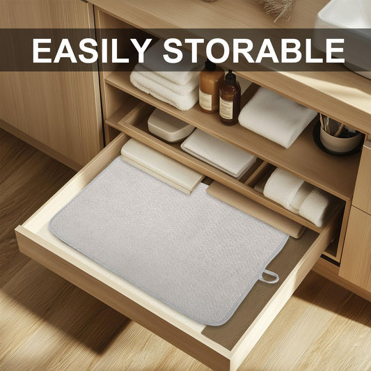 Light Gray Dish Drying Mats 17” x 24” – XXL Kitchen Drying Mat for Counter, Super Absorbent Microfiber Dish Rack Mat, Foldable Drying Pad for Dishes, Pots, Pans – Dish Drainer Mat