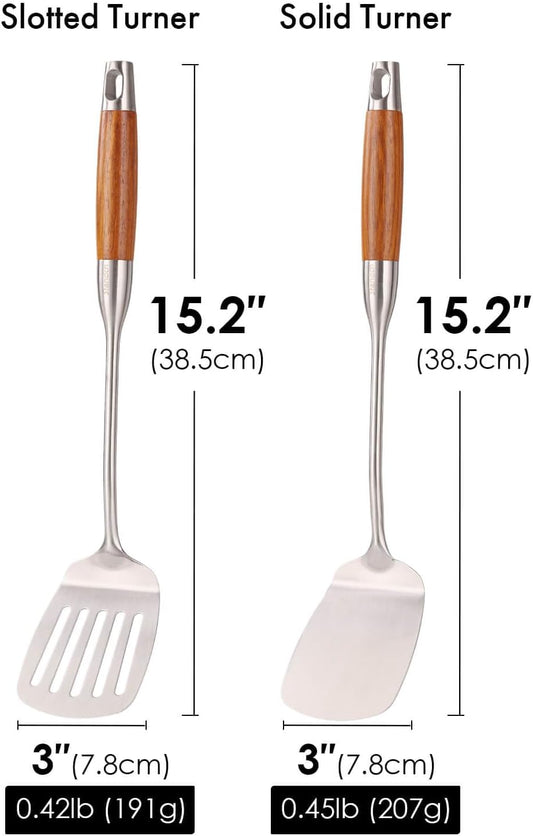 18/10 Stainless Steel Spatulas Set - 15” Long Spatulas for Kitchen, Metal Cooking Utensils - 1 Slotted Spatula + 1 Solid Turner (style B - roosewood handle)