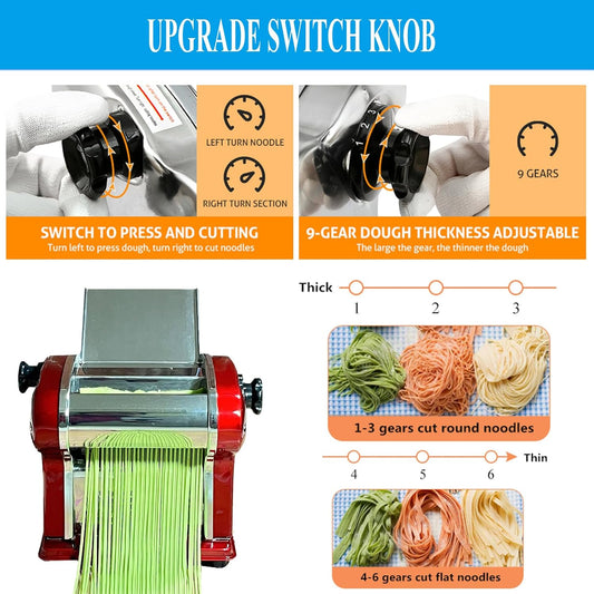 XINGYUEXUAN Electric Pasta Maker Noodle Machine with 1 Blades of 2.5 mm Round, 9 Gear Thickness Adjustment 0.3-4 mm for Pasta Noodle Dumpling (red)