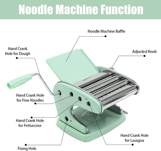 Pasta Maker Machine-6 Adjustable Thickness Settings, Adjustable Clamp, stainless steel Construction for Spaghetti, Fettuccini, Lasagna, Dumpling Skins (Green pasta maker)