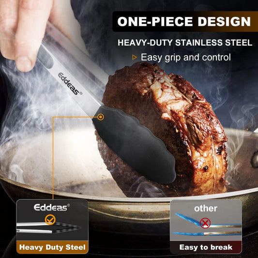 Kitchen Tongs - 12 inch Heavy Duty Food Tongs, Ergonomic Grip,Superior Stainless Steel and Non-Slip Heat Resistant handle - Perfect for Cooking, Salad, Grilling, Barbecue,Dishwasher safe