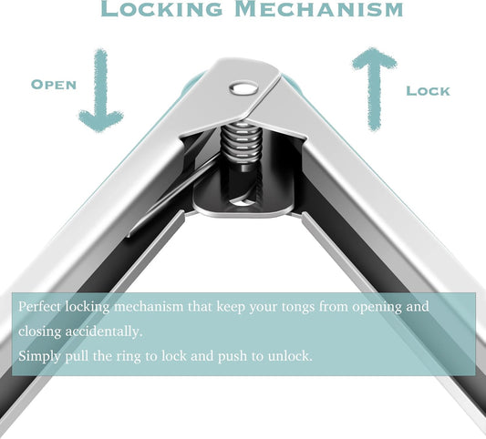 Tongs For Cooking - Heat Resistant 600 Degrees Stainless Steel Kitchen Tong,Heavy Duty Metal Locking Tongs - Perfect for Food,Salad and BBQ set of 3 (7",9" and 12") Dishwasher