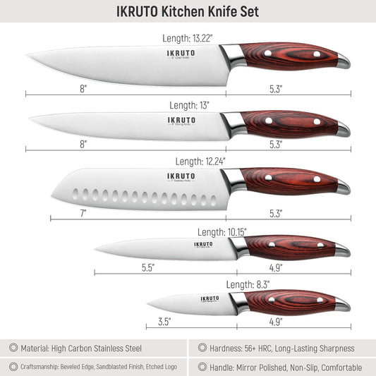 5-Piece kitchen knife set - Ultra-Sharp High Carbon Stainless Steel Blades with Ergonomic Pakkawood Handles, Professional Kitchen Knives Sets, Elegant Gift Box Packaging