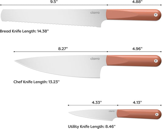 CIARRA Professional Kitchen Knife Set 4 PCS - Chef Knife Set, Bread Knife, Utility Knife, High Carbon Stainless Steel Cooking Knives with Gift Box (Orange)