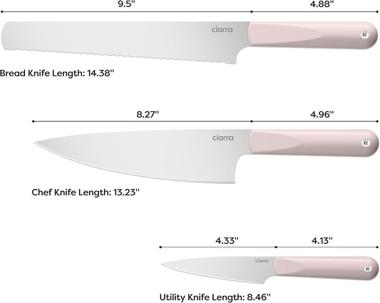 CIARRA Professional Kitchen Knife Set 4 PCS - Chef Knife Set, Bread Knife, Utility Knife, High Carbon Stainless Steel Cooking Knives with Gift Box (Pink)