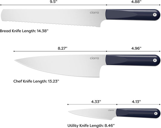 CIARRA Professional Kitchen Knife Set 5 PCS - Chef Knife Set, Bread Knife, Utility Knife, High Carbon Stainless Steel Cooking Knives with Gift Box (Blue)
