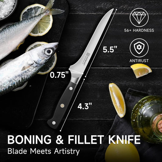 KEEMAKE Boning Knife for Meat Cutting, 5.5 Inch Fillet Knife for Fish, High Carbon Stainless Steel Ultra Sharp Japanese Kitchen Knives for Meat Poultry Cutting