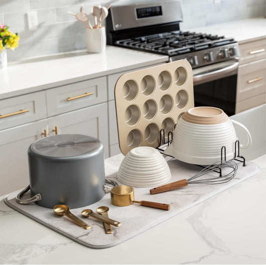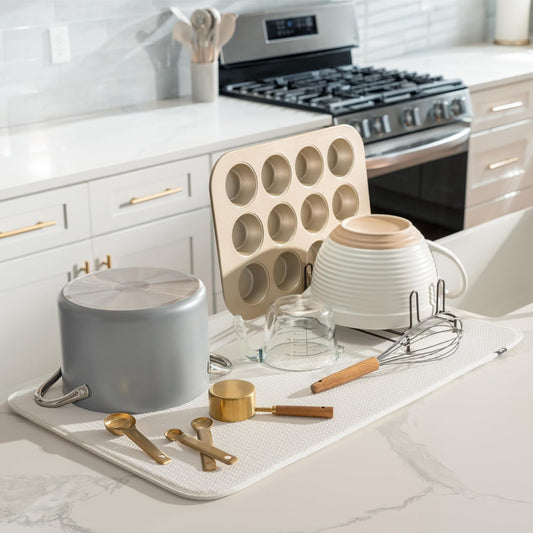S&T INC. Dish Drying Mat XL, 18” x 24”, Absorbent Microfiber Kitchen Counter Mat, Dish Drying Pad for Dishes, Utensils, Pots and Pans, Extra Large, Cream