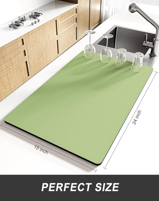 Rnivvi Dish Drying Mat for Kitchen Counter, XL 15 x 24" Super Absorbent Drainer Pad Easy Clean Dish Rack Pad, Non-Slip Heat Resistant Coffee Bar Mat for Coffee Machine Station Accessories Decor, Green