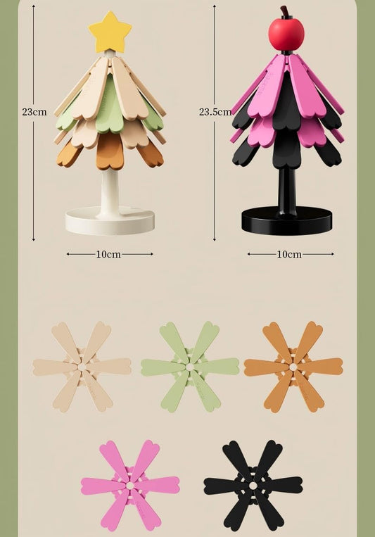 Christmas Tree Silicone Hot Pad, 4-Pack Heat Resistant Trivet for Pots and Pans, Holiday Kitchen Potholder, Coaster, Christmas Table Decor (Four Layers of Yellow-Green Color + Apple)