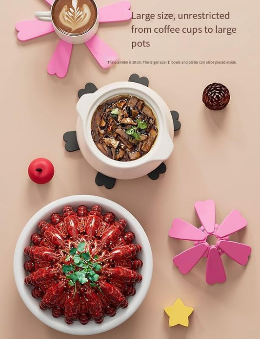 Trivets for Hot Dishes 4 - Pack Heat Resistant Pot Holders for Kitchen | Non - Slip Hot Pads for Hot Pots, Pans & Quartz Countertops | Black Kitchen Silicone Mats
