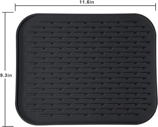 Silicone Dish Drying Mat for Multiple Usage,Easy clean,Eco-friendly,Super Sturdy Silicone Dish Drying Mat and Trivet, Dishwasher Safe, Heat Resistant (Black, S 11.6×9.3inch)