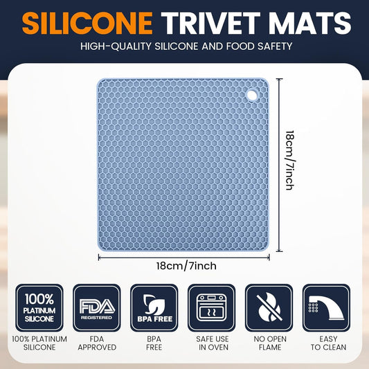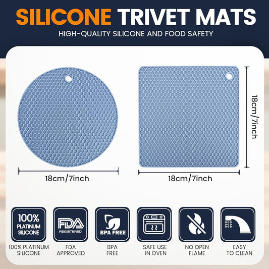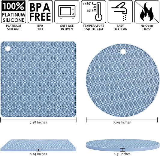 Silicone Trivet Mats 4 Heat Resistant Pot Holders Multipurpose Non-Slip Hot Pads for Kitchen Potholders, Drying mat, Jar Opener, Spoon Holder, Coaster(Nordic Blue)