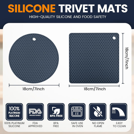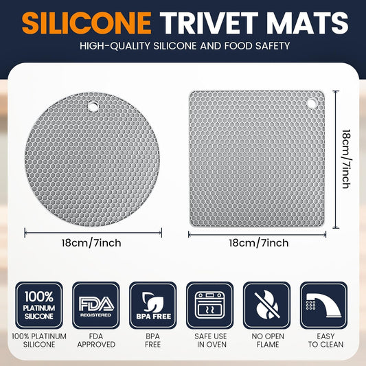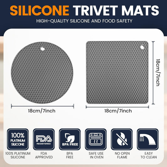 Silicone Trivet Mats 4 Heat Resistant Pot Holders Multipurpose Non-Slip Hot Pads for Kitchen Potholders, Drying mat, Jar Opener, Spoon Holder, Coaster(Nordic Grey)