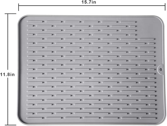 Silicone Dish Drying Mat for Multiple Usage,Easy clean,Eco-friendly,Super Sturdy Silicone Dish Drying Mat and Trivet, Dishwasher Safe, Heat Resistant (Gray, L 17.7×15.7inch)