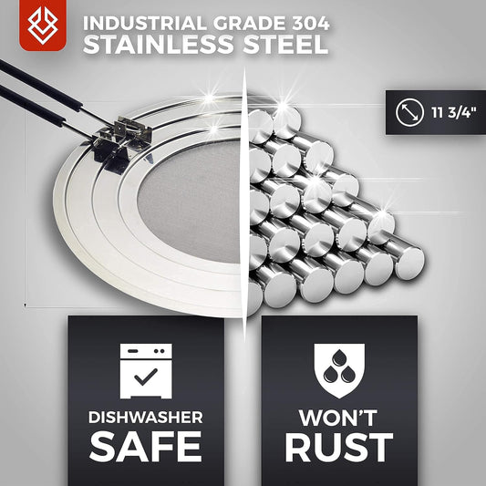LUCETE Stainless Steel Splatter Screen 11" – Hot Grease Splatter Screen for Frying Pan - Oil Splash Guard - Protect your Skin from Burn & Keep Your Kitchen Cleaner (11inch)