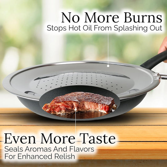 LUCETE Stainless Steel Splatter Screen 12.6" – Hot Grease Splatter Screen for Frying Pan - Oil Splash Guard - Protect your Skin from Burn & Keep Your Kitchen Cleaner (12.6 inch)