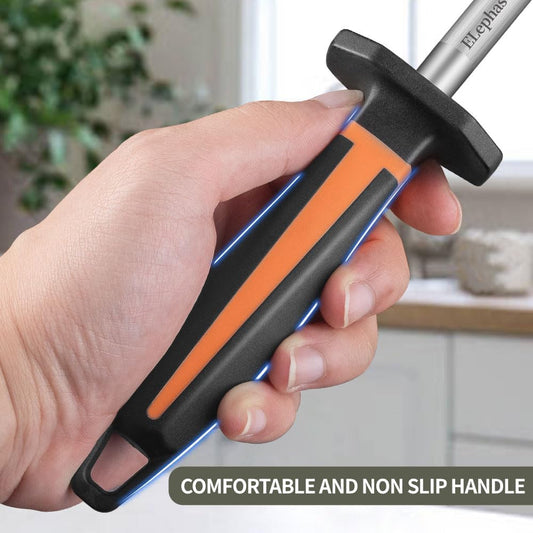 Knife Sharpener Rod, Kitchen Knives Sharpener Carbon Steel Professional Knife Sharpening Steel, Honing Rod with Hanging Holes (13 inches), E