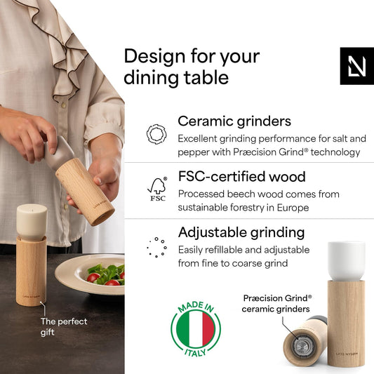 LARS NYSØM Wooden Salt and Pepper Grinder Set Manual - Salt and Pepper Mills with Adjustable Ceramic Grinder - Elegant Beechwood Pepper and Salt Mill Set for Dining Table (Black/White)