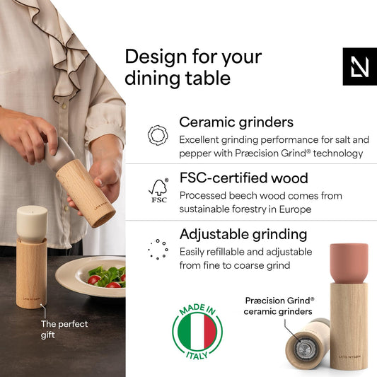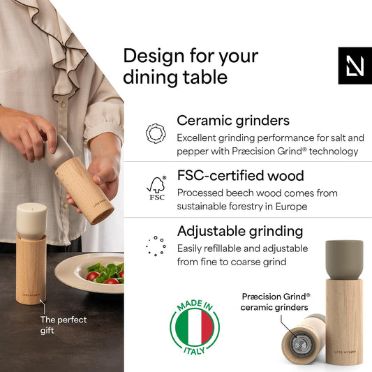 LARS NYSØM Wooden Salt and Pepper Grinder Set Manual - Salt and Pepper Mills with Adjustable Ceramic Grinder - Elegant Beechwood Pepper and Salt Mill Set for Dining Table (Taupe Brown)