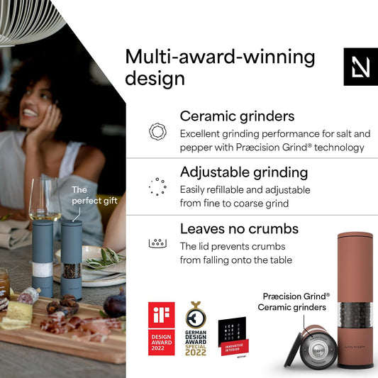 LARS NYSØM Salt and Pepper Grinder Set Manual, Stainless Steel Salt and Pepper Mills with Adjustable Ceramic Grinder I Design Spice Shakers (Black/White)