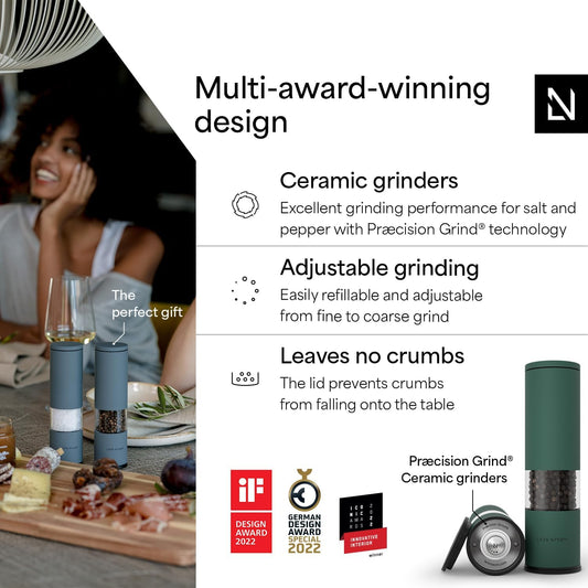 LARS NYSØM Salt and Pepper Grinder Set Manual, Stainless Steel Salt and Pepper Mills with Adjustable Ceramic Grinder I Design Spice Shakers (Pine Green)