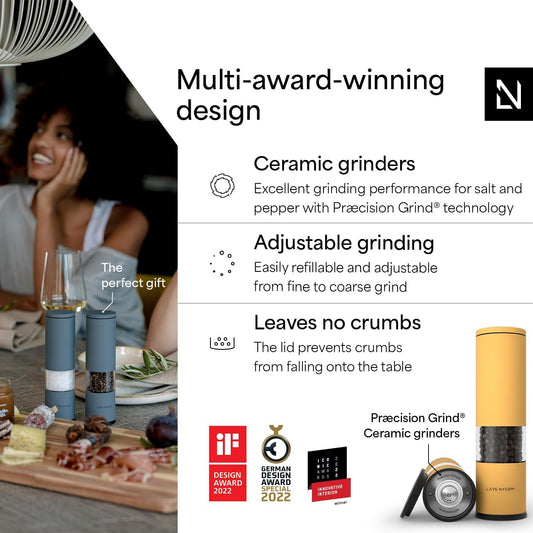 LARS NYSØM Salt and Pepper Grinder Set Manual, Stainless Steel Salt and Pepper Mills with Adjustable Ceramic Grinder I Design Spice Shakers (Mustard Yellow)