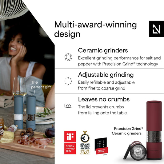 LARS NYSØM Salt and Pepper Grinder Set Manual, Stainless Steel Salt and Pepper Mills with Adjustable Ceramic Grinder I Design Spice Shakers (Berry Red)
