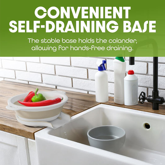 Collapsible Colanders (2 Pack Set) Food Strainers with Over-Sink Water Draining Base for Pasta Fruits and Vegetables (4 and 5 Quart) - White Beige
