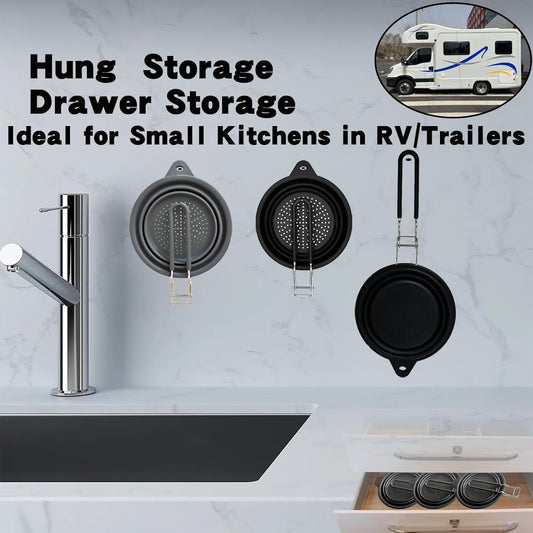 Silicone Collapsible Colander with Handle,Home/RV Kitchen Space Saving Silicone Colander,Drainage of Food,Vegetables,Fruits (Black)