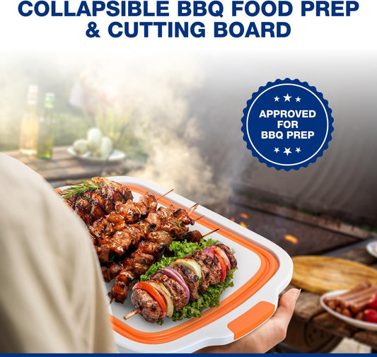 2-Pack XL Collapsible BBQ Prep Tub with Built-In Cutting Board, Lid & Strainer – Marinate, Drain & Prep – Large Food-Safe Container – Perfect for Grilling, Smoking & Outdoor Cooking