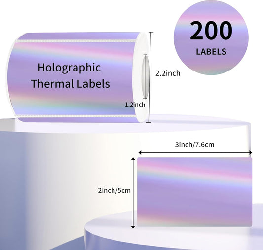 3x2 Inch Holographic Thermal Labels, Purple Thermal Sticker Labels, Rainbow Glitter Thermal Stickers for Price, Barcode, Mailing, Name, DIY Custom Logo Design, 200 Sheets/1 Roll