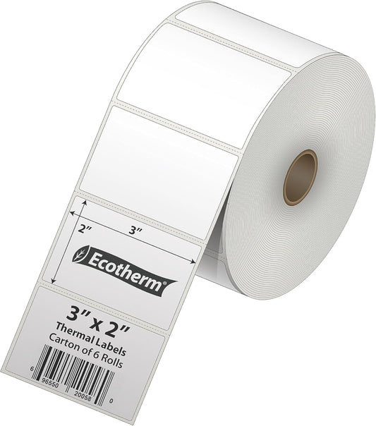 3" x 2" Thermal Labels | 6 Rolls | 7440 Labels | fits Zebra, Munbyn, Rollo, Godex, Arkscan, iDPRT, Offnova Thermal Label Printers and More | Blank White Adhesive Stickers by Ecotherm