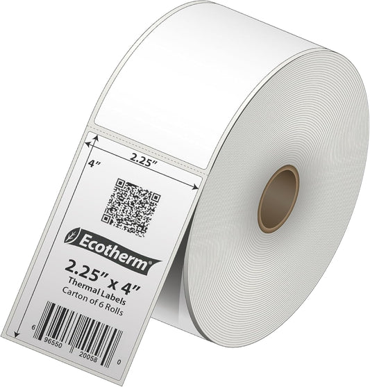 2.25" x 2.5" Thermal Labels | 6 Rolls | 6000 Labels | fits Zebra, Munbyn, Rollo, Godex, Arkscan, iDPRT, Offnova Thermal Label Printers and More | Blank White Adhesive Stickers by Ecotherm