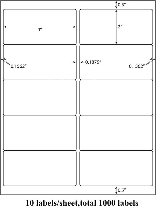9527 Product 10 UP Sticker Labels,2x4 inches FBA Shipping Address Labels for Laser/Ink Jet Printer,Total 1000 Labels