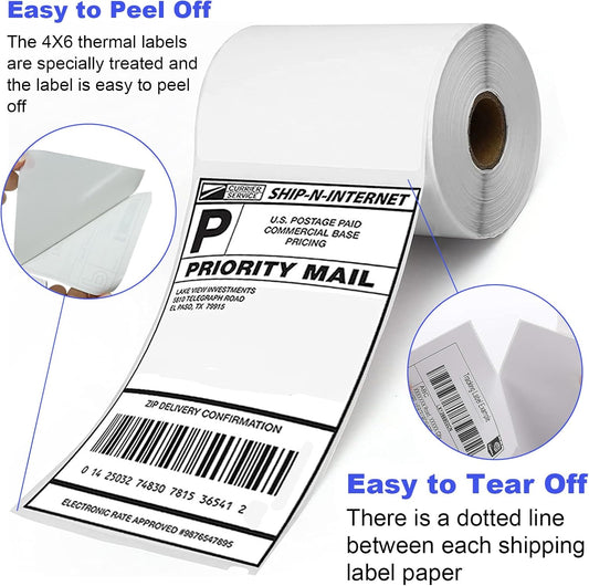 FungLam 4"X6" Thermal Shipping Labels, 4X6 Labels,White Mailing Shipping Labels, Perforated, 250 Labels,Compatible with iDPRT, JADENS and Rollo.