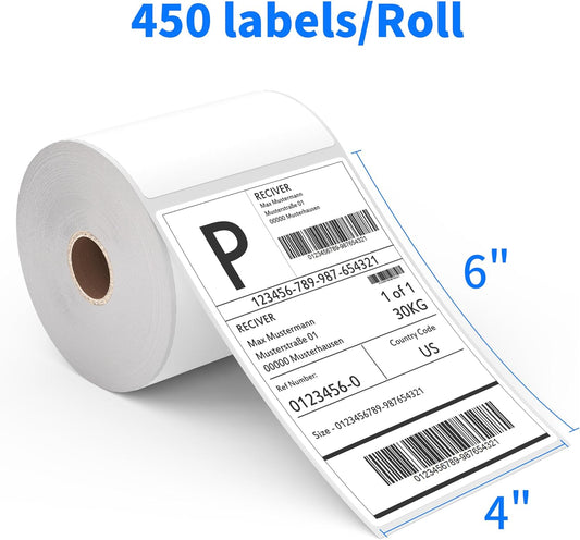 FungLam 4"x6" Direct Thermal Shipping Labels - Compatible with Zebra, Munbyn, Rollo Printers - 450 Labels Per Roll, 20 Rolls