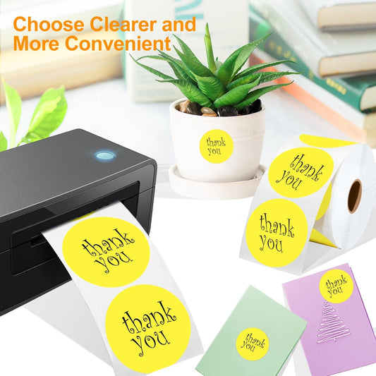 2 Inch Circle Thermal Sticker Labels, 2" Self-Adhesive Round Thermal Stickers for Business-750 Labels/1 Roll (Yellow)