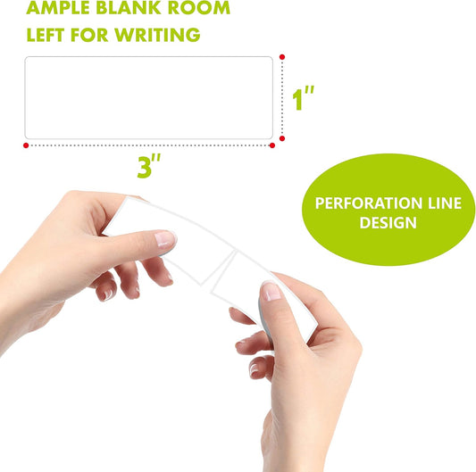 300 Removable Blank Food Labels, Water/Oil/Tear Resistant with Perforation Line for Freezer Food Containers Jars Pantry Organization (Each Measures 1” x 3”)
