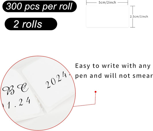 Removable Freezer Labels, Date Label 1x2 Inch Food Storage Stickers, Waterproof Oil Resistant Easy Clean Leaves no Residue 300 Total Per Roll,2 Rolls
