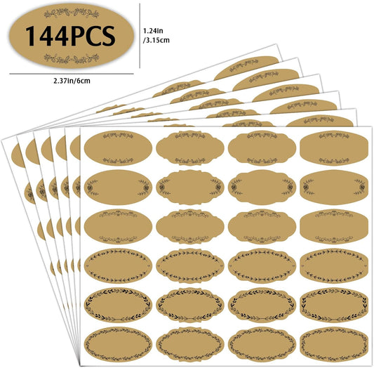 Nardo Visgo Oval Vintage Brown Labels for Bottles, Removable Waterproof Write-on Sticker Labels for Essential Oil Bottles, Christmas Gift Tags, Food Spice Jars or Handmade Jam,Free Black Marker,144pcs