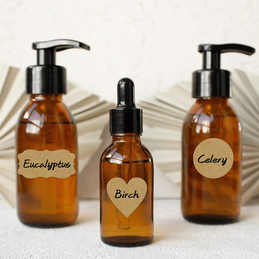 Nardo Visgo Natural Brown Kraft Bottle Labels,Assorted Size Self-Adhesive Removable Kraft Paper Sticker Labels for Essential Oil Bottles,Gift Tags,Mason Jars or Storage Bins,Free Black Marker,192pcs